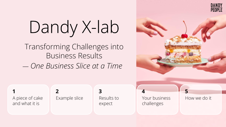 Don’t miss this exciting (and delicious) presentation by Mia Kolmodin on how we in the Dandy X-Lab support our customers in delivering real business value and innovation at speed by transforming challenges into business results — one business slice at a time!
